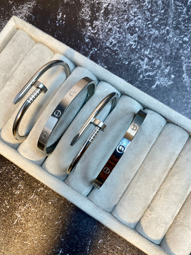 بنگل طرح لاو با طراحی الهامگرفته از برند کارتیه، نماد عشق و ماندگاریه. مناسب برای استایلهای مینیمال و رسمی، با ظاهری شیک و ساده که هیچوقت از مد نمیافته.