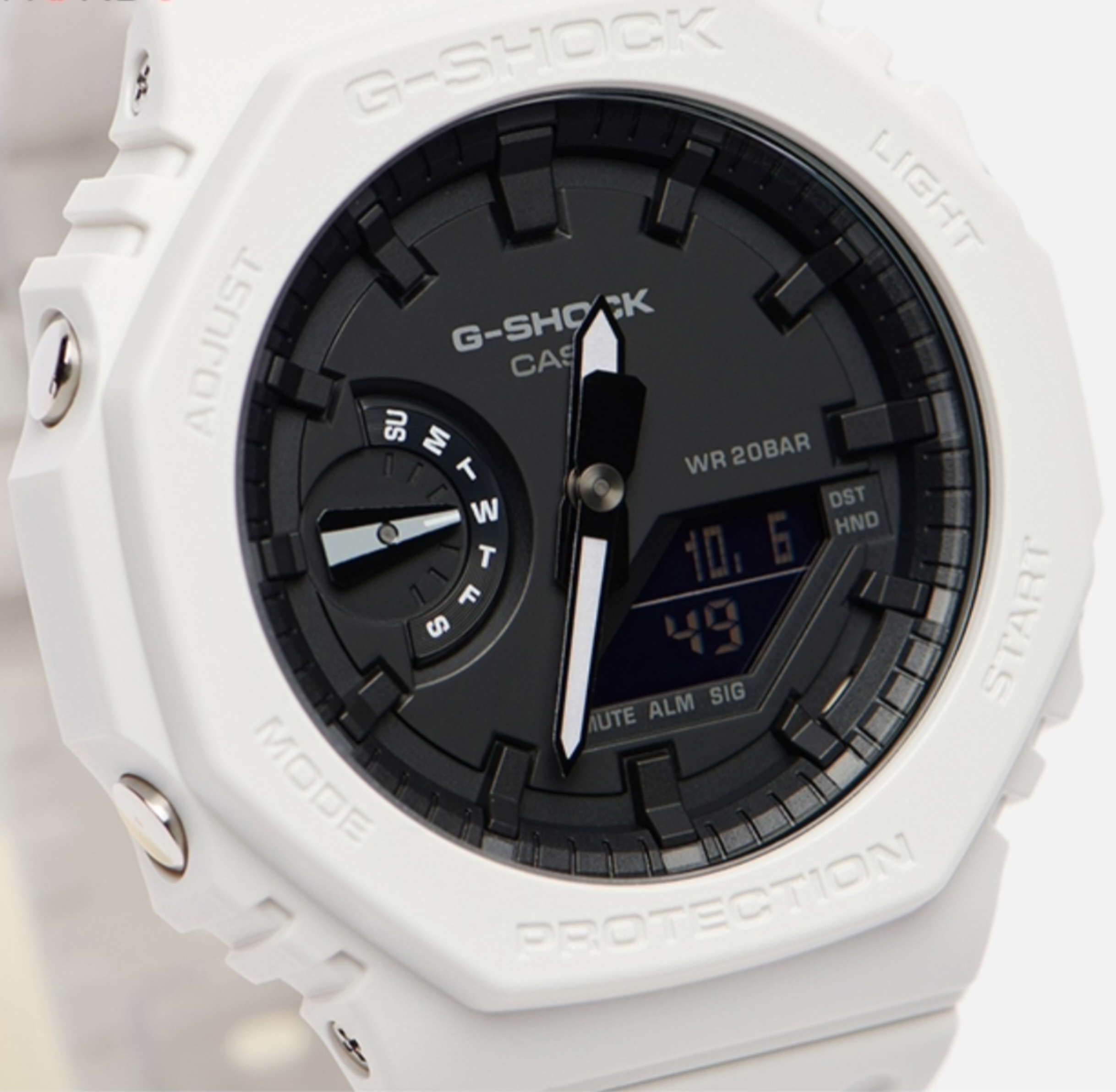 این ساعت با رنگ سفید و صفحه نمایشگر مشکی جلوه ی بی نظیری به ساعت داده همچنین دیگر ویژگی های این مدل ساعت جهانی با ۴۹ منطقه زمانی بوده همچنین مقاومت در برابر میدان مغناطیسی (Magnetic Resistant) – ست کردن چهار آلارم (با یک آلارم با قابلیت SNZ) که زنگ گوشی را همانند گوشی موبایل تکرار میکند.