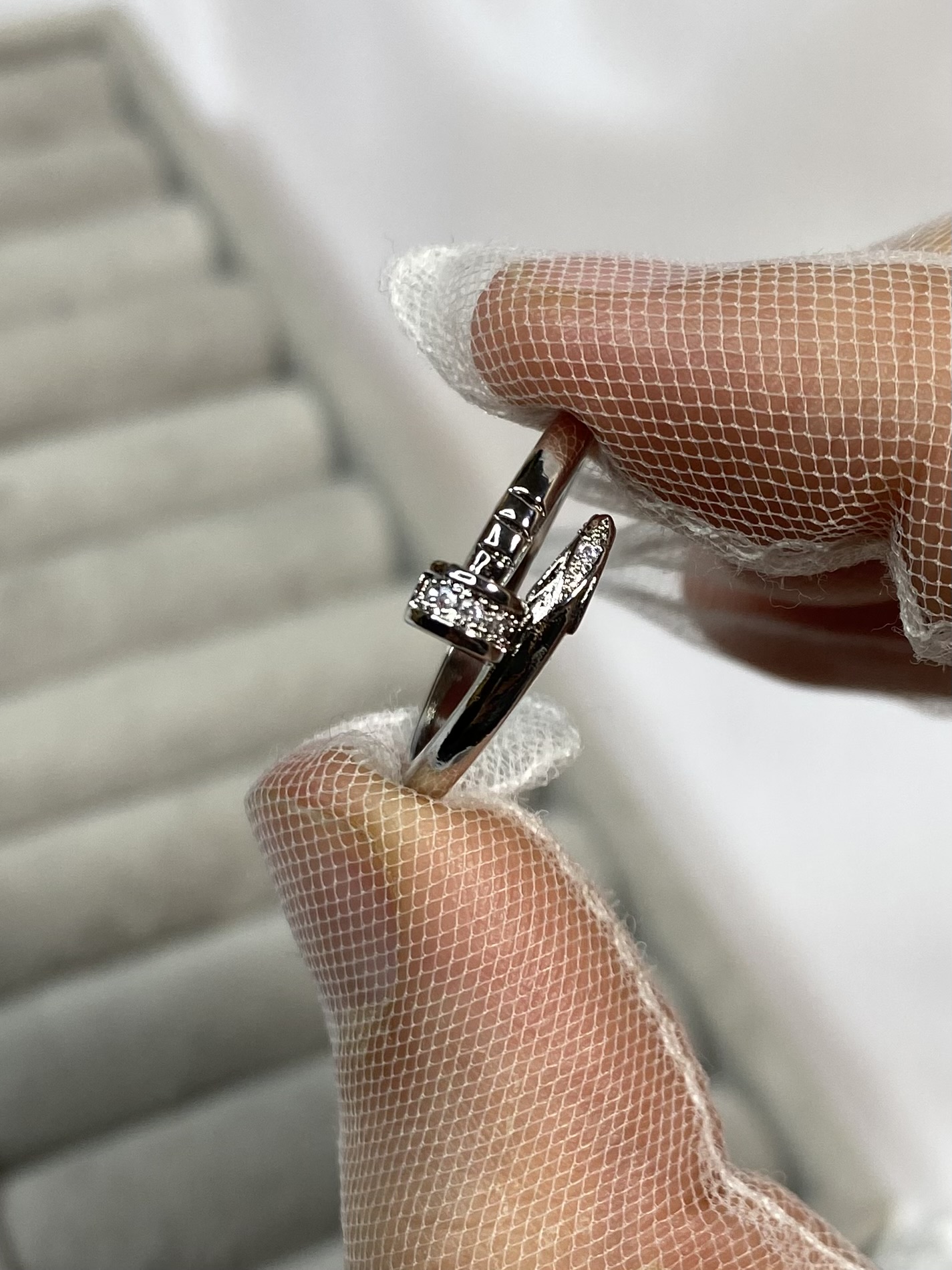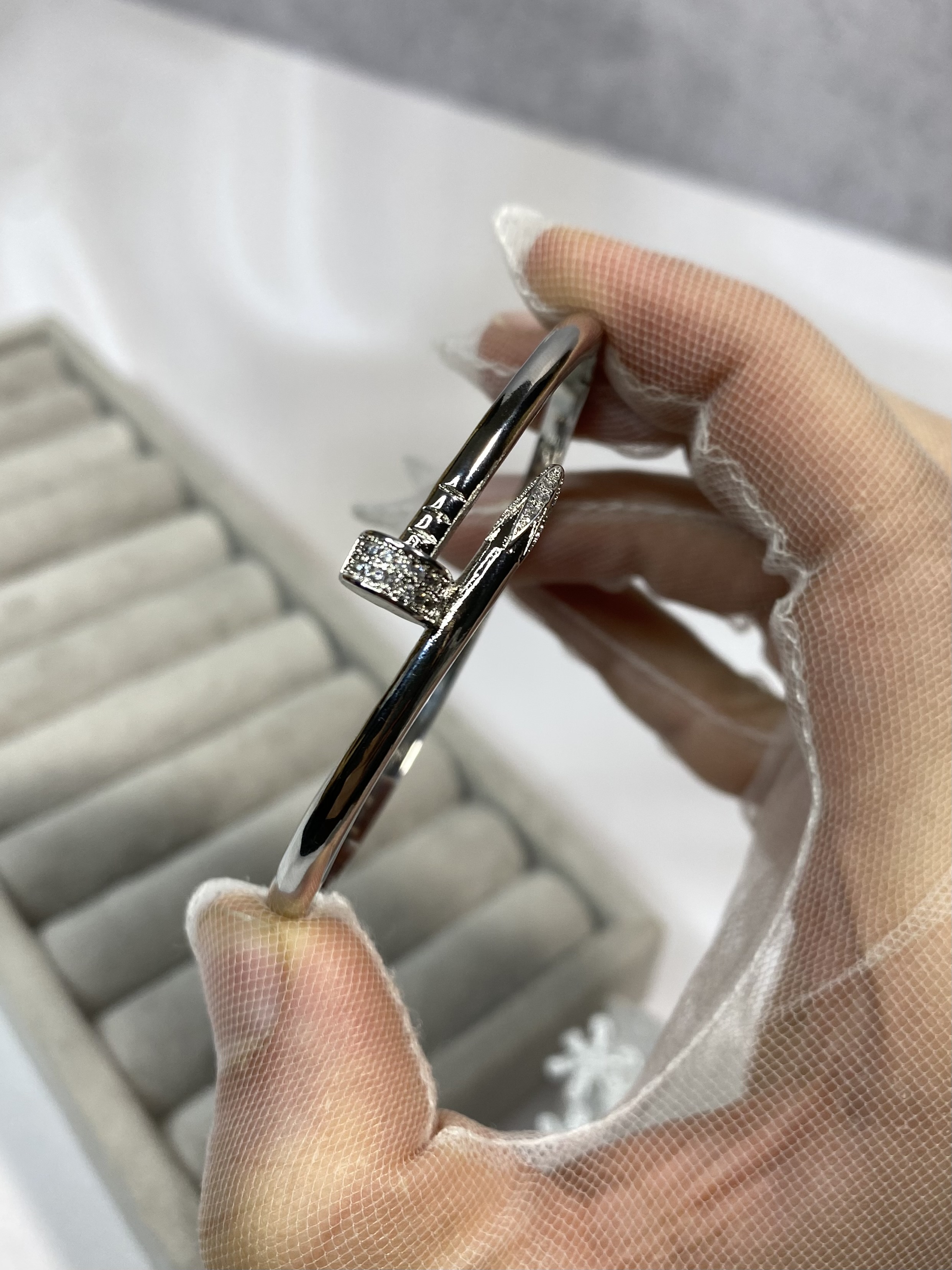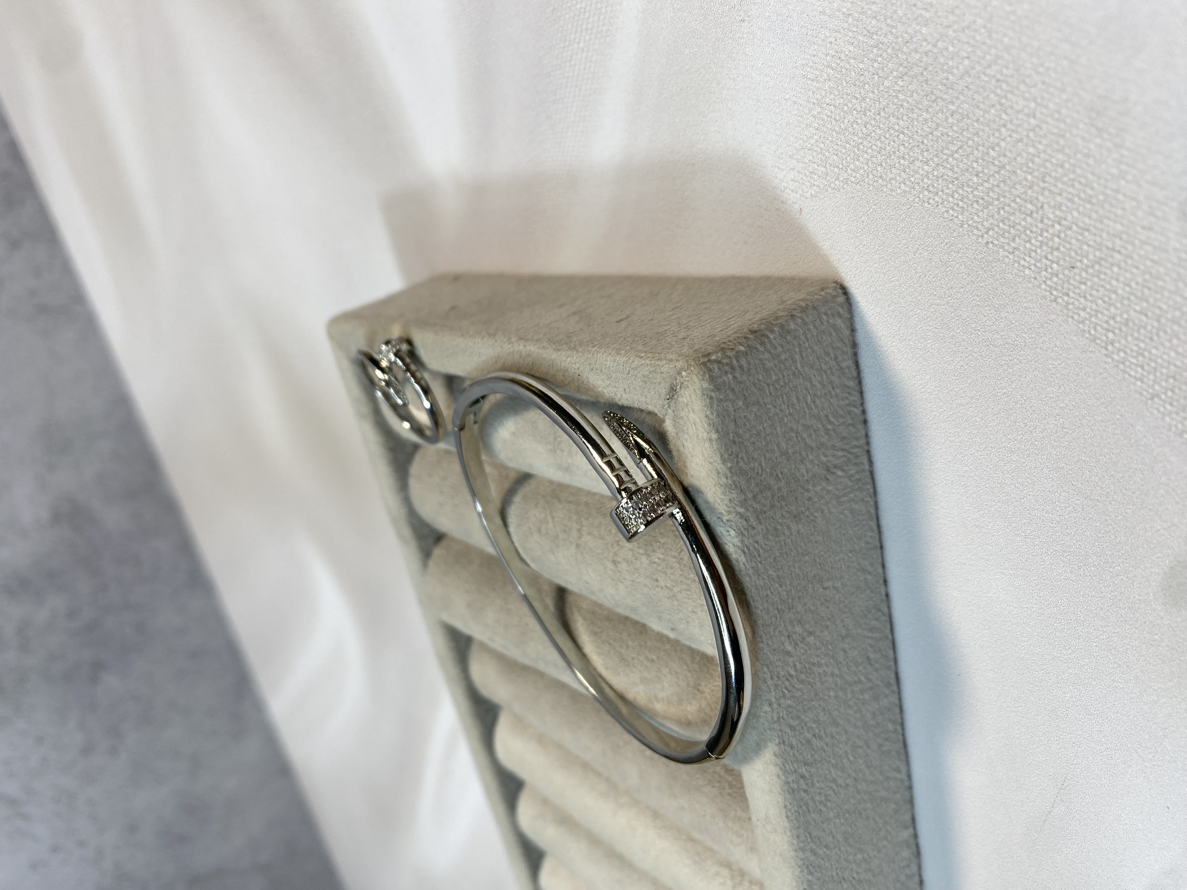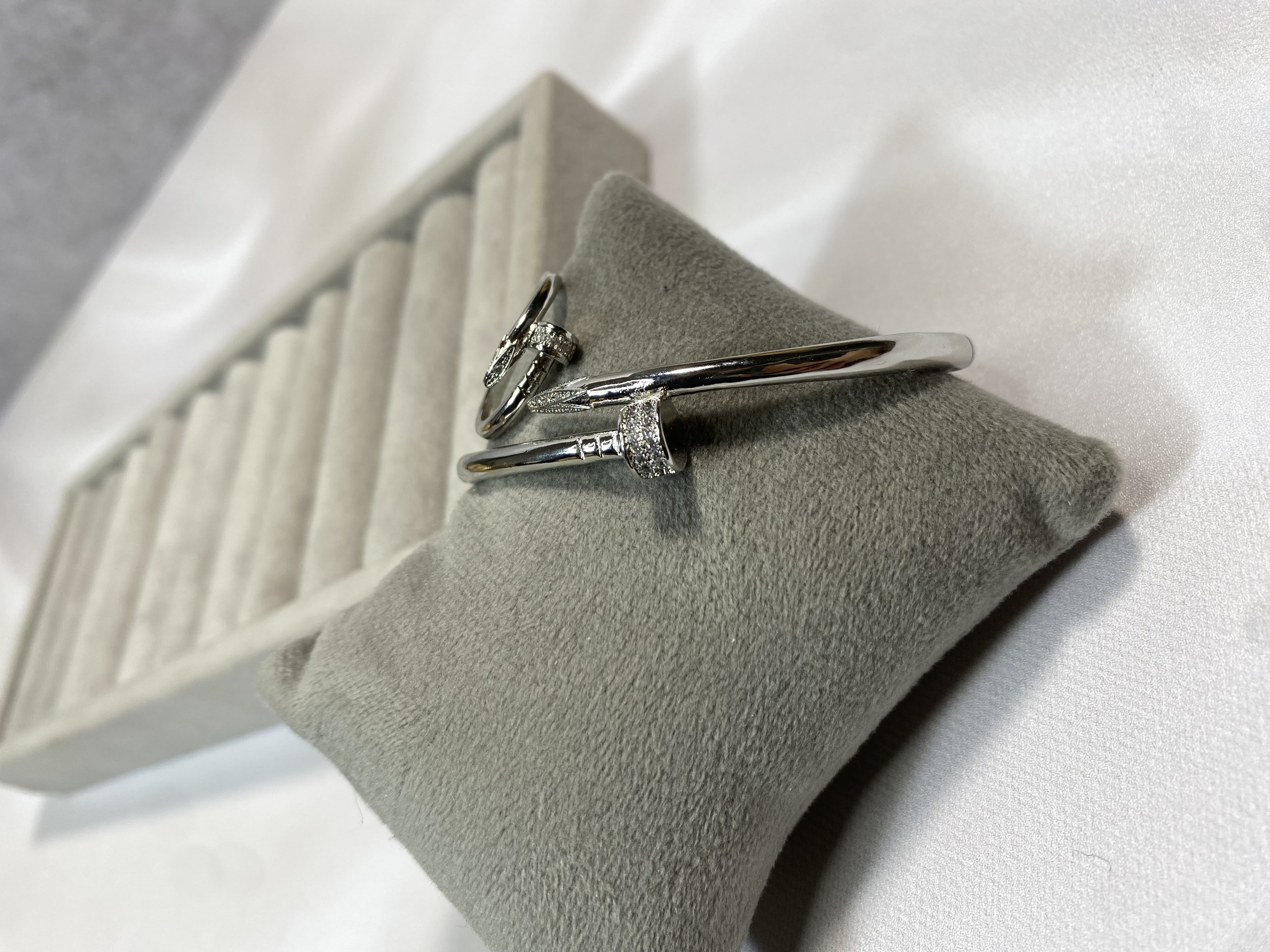 ست بنگل و انگشتر طرح طلا میخی ظریف نقره ای رنگ ثابت