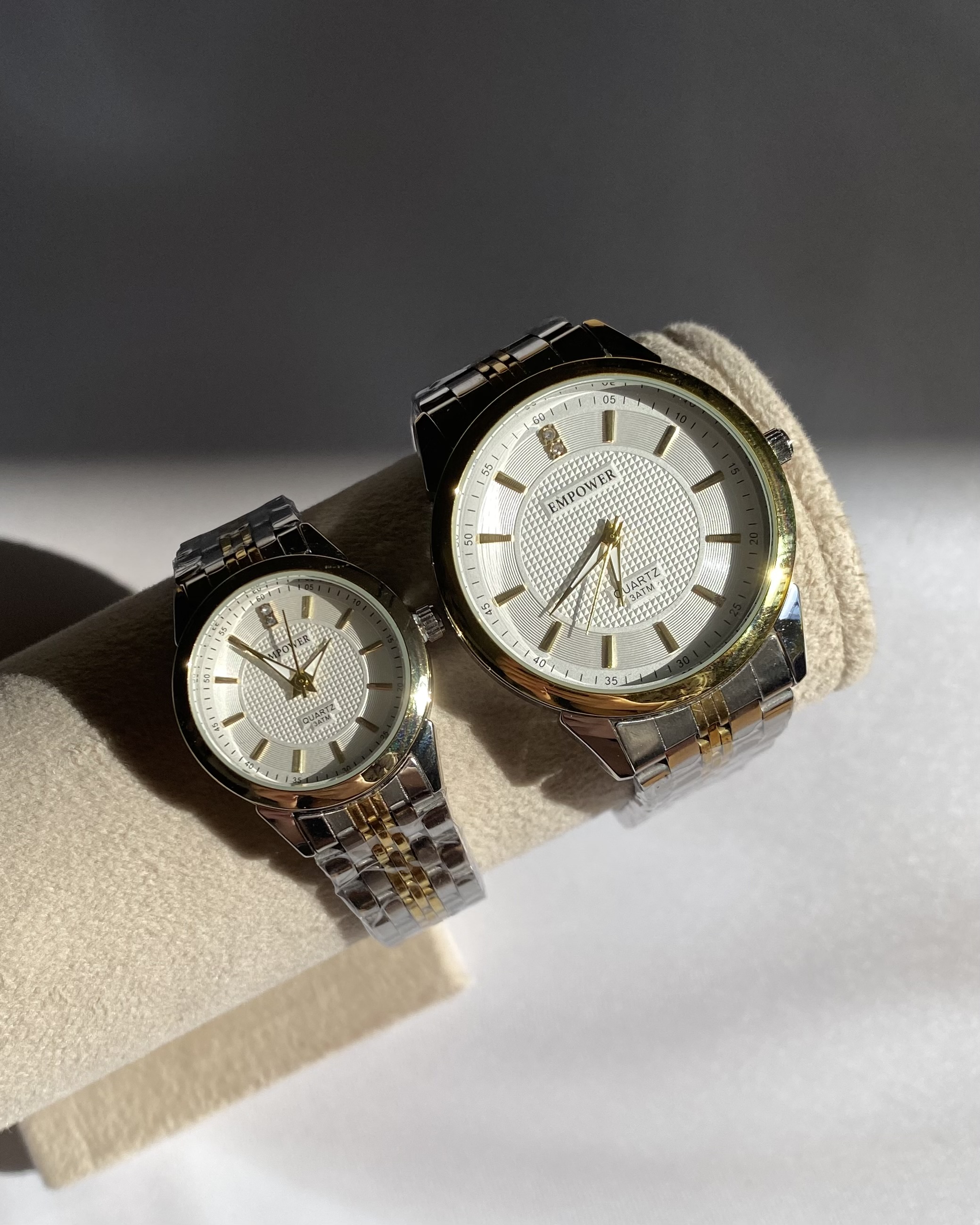 ساعت امپاور نقره ای با رد طلایی بصورت ست و تک