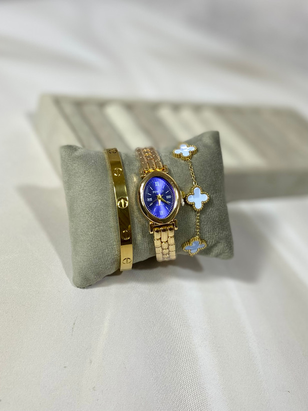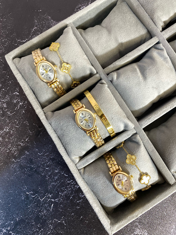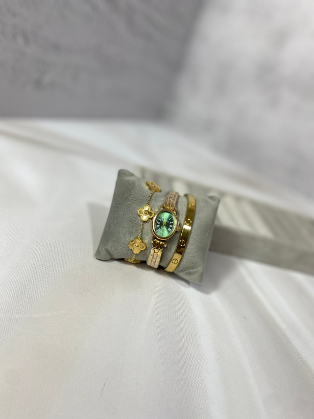 ترکیب طلایی و نقرهای همیشه نمادی از ظرافت و هماهنگی است. در این مدل، تضاد ملایم بین بند طلایی و صفحه نقرهای باعث میشود ساعت هم رسمی و هم لطیف بهنظر برسد. وزن سبک و قفل محکم، استفاده روزانه را راحت میکند. کیفیت آبکاری خوب و رنگ ثابت نیز از مزایای اصلی این مدل است.