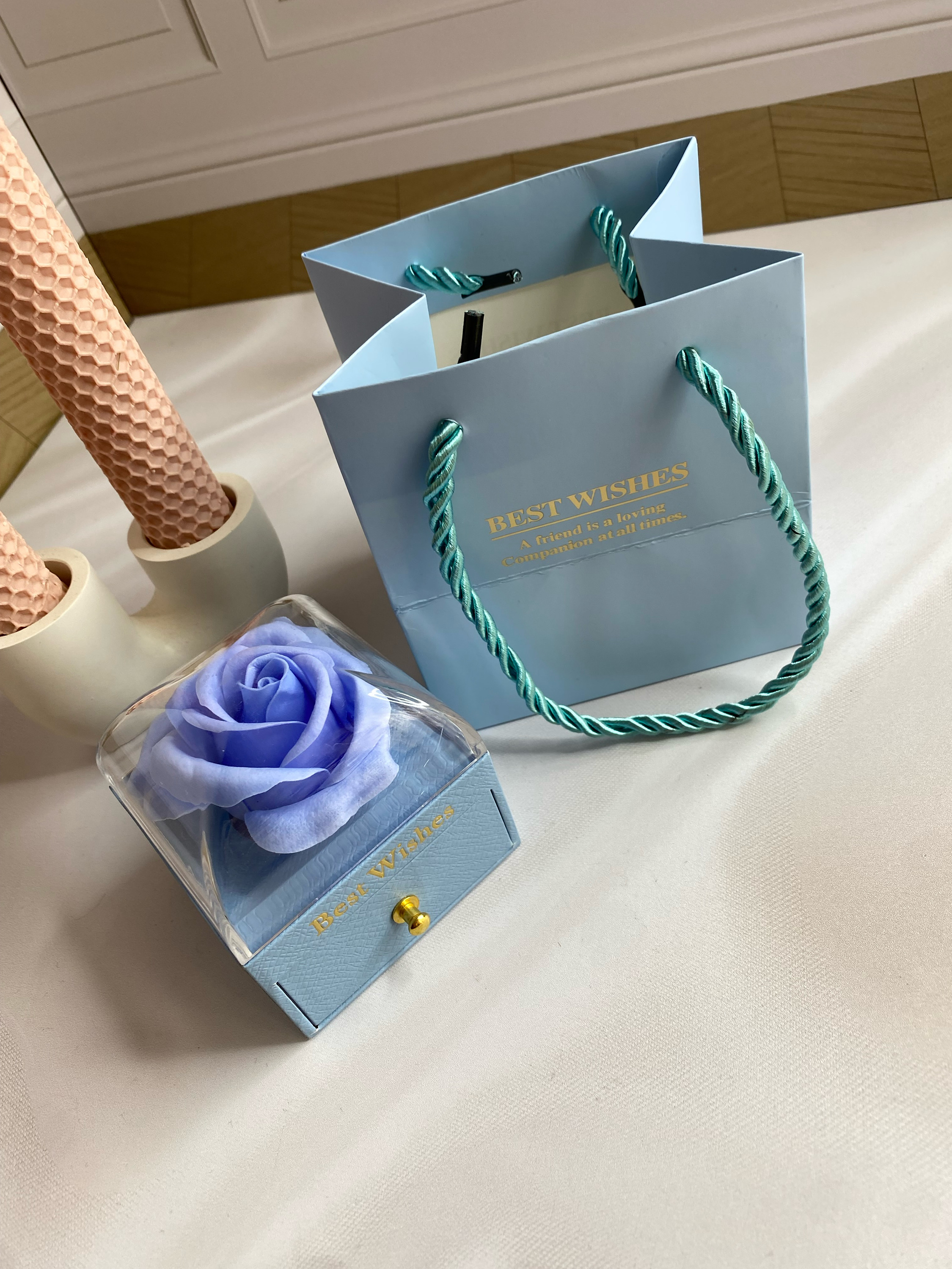 باکس گل رز جاودان آبی وارداتی همراه ساک دستی